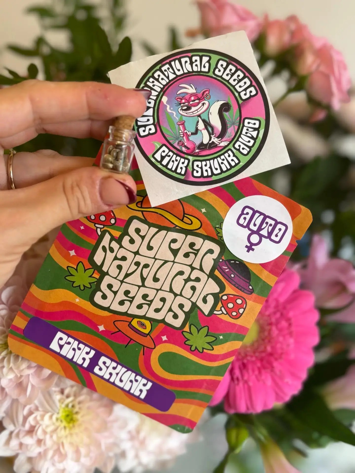 Introducing Pink Skunk Auto, an indica powerhouse from Supernatural Seeds’ new autoflowering range. Bred from the exceptional genetics of Pink Lemon Punch and Super Skunk, this strain packs 25% THC and delivers a potent, deeply relaxing high. With a robust flavour profile of pine, citrus, and fruit, Pink Skunk Auto offers a perfectly balanced experience for those seeking a strong yet smooth indica strain.